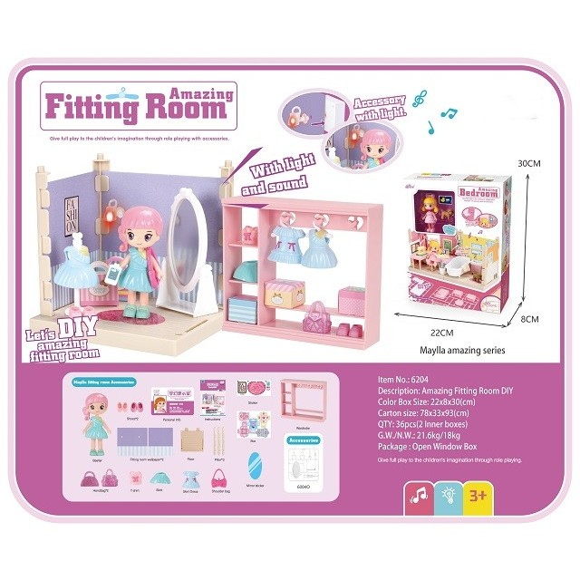Pe langa asta, cutia vine si cu oglinda (esentiala in probatul de haine), scara, cadru de haine si bineinteles, tapetul pentru perete in 2 bucati. Hai si tu sa o ajuti cu spiritul tau fashionist si sa creati o garderoba de invidiat!