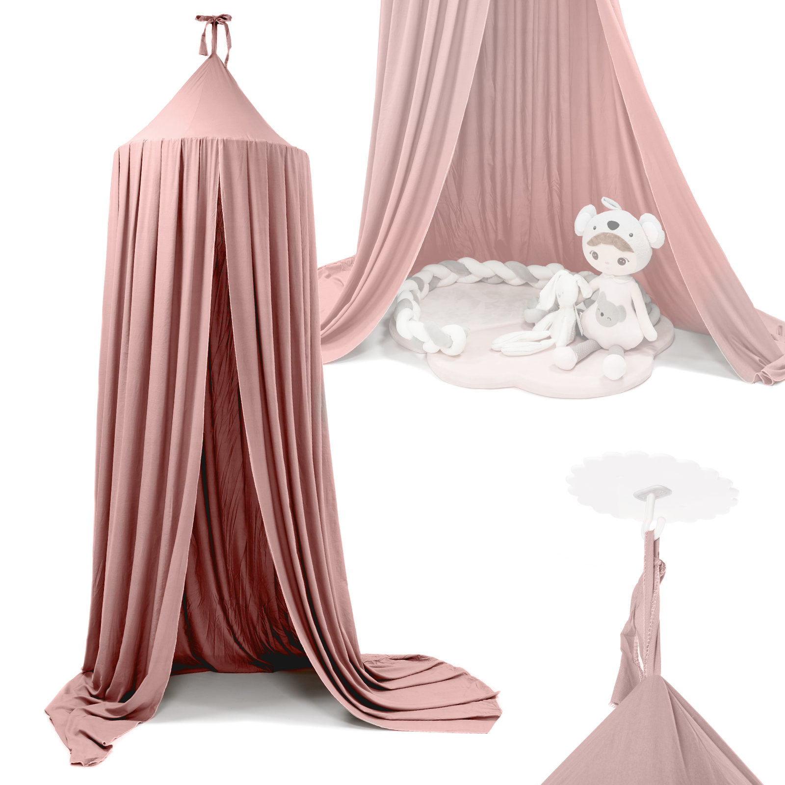 Specificatii tehnice: Culoare: roz Material: poliester Diametru inel: 70 cm Lungime baldachin: 290 cm Lungime snururi: 51 cm Latime material: aprox. 420 cm Dimensiuni ambalaj: 34 x 40 x 4 cm Scurta descriere: Acest baldachin suspendat in nuanta roz creeaza un spatiu magic si reconfortant pentru copilul tau. Poate fi montat deasupra patului pentru un somn linistit sau intr-un colt de joaca, devenind un refugiu ideal pentru lectura si relaxare. Datorita designului delicat si culorii pastel, baldachinul adauga un plus de farmec si intimitate camerei copilului. Se instaleaza usor cu accesoriile incluse in pachet. Caracteristici principale: Creeaza un spatiu ideal pentru joaca, lectura sau odihna Material usor si vaporos din poliester roz Design elegant, potrivit pentru orice stil de amenajare Include kit complet de montaj: banda dublu adeziva, carlig si suruburi Perfect ca decor deasupra patului sau in coltul de joaca