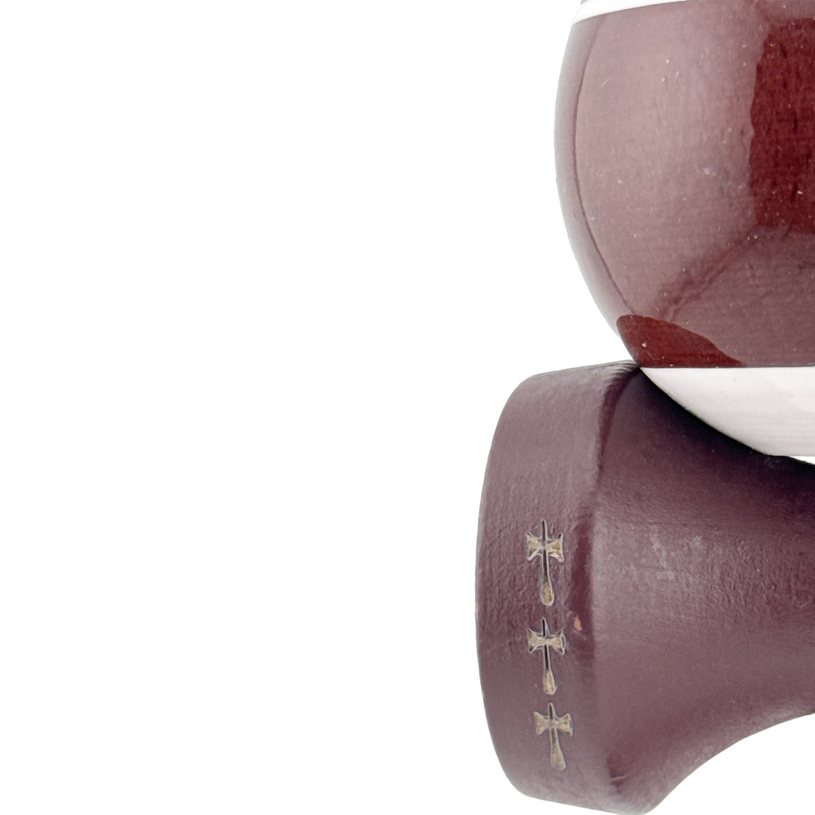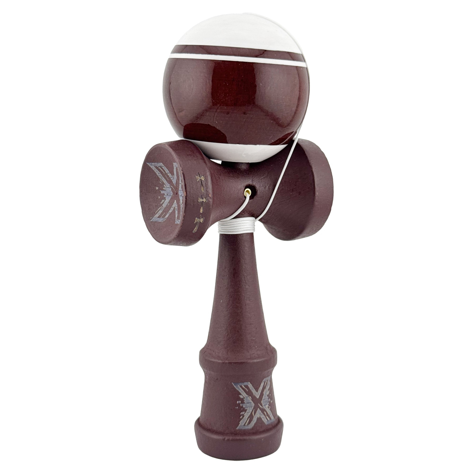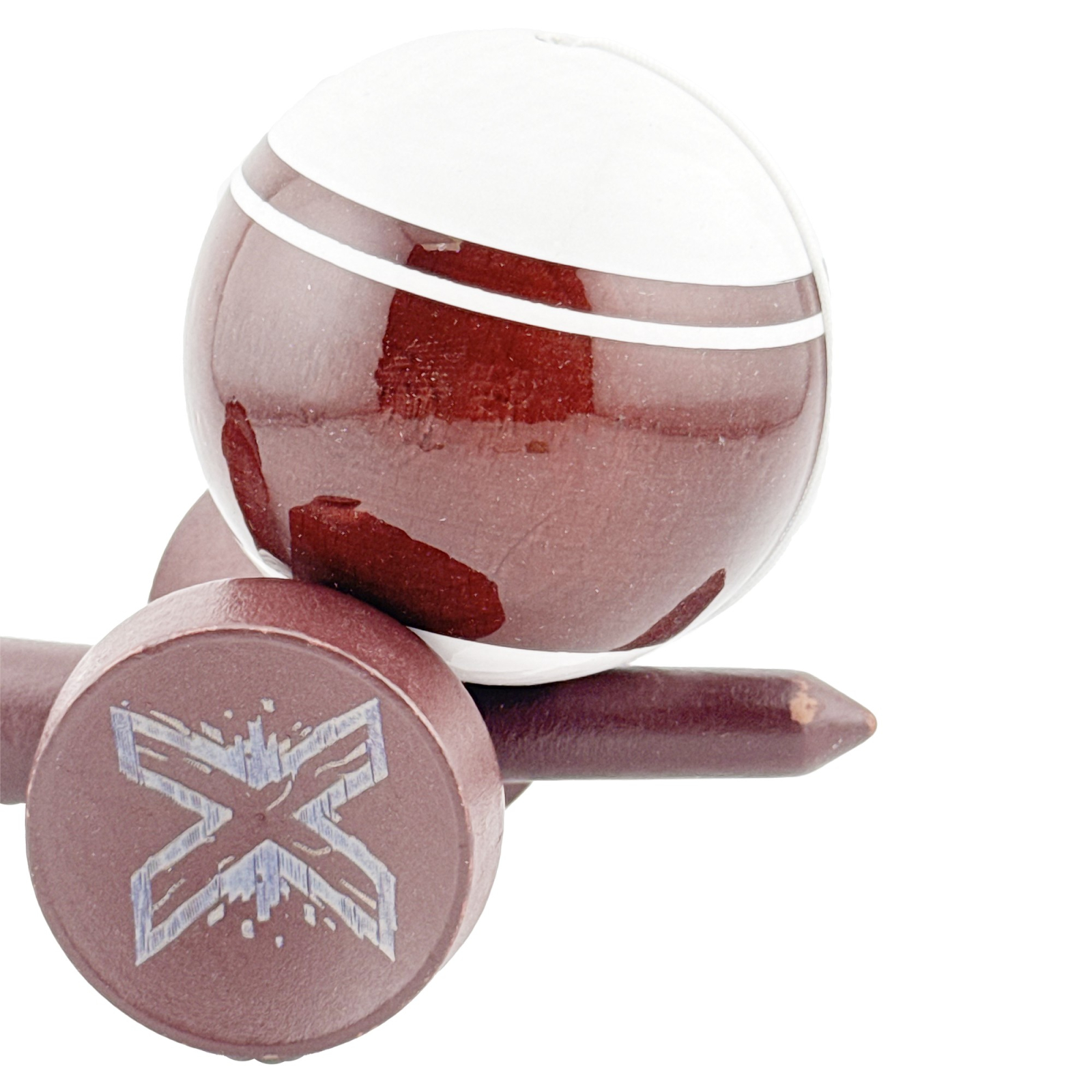 Kendama X Originala, Profesionala, , Super Sticky Legendary, Rulment Metalic cu Ata 55 cm, Alb/Maro