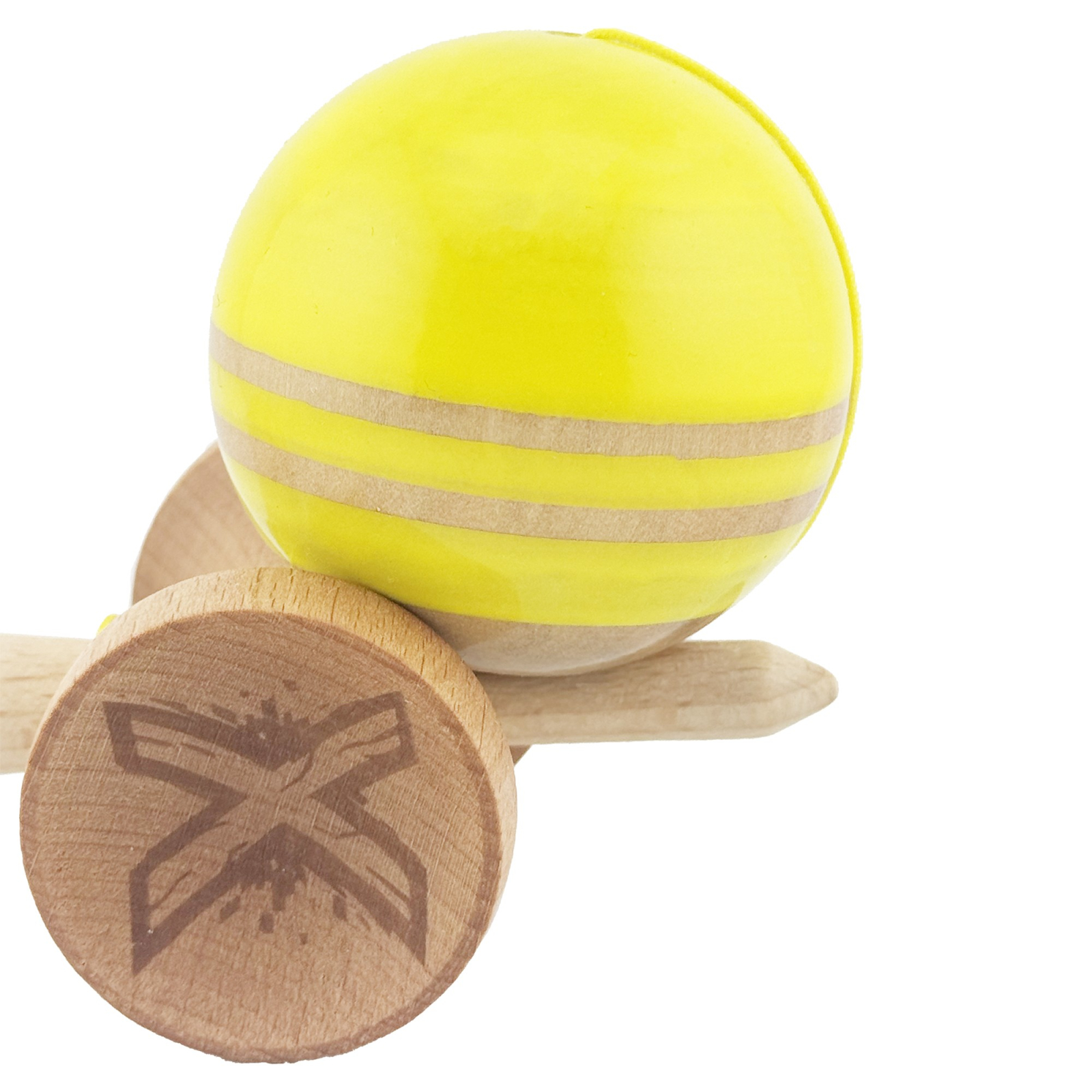 Kendama X Rainbow Originala, Profesionala, , Big Cups V2, Super Sticky cu Cupe Mari, Rulment Metalic, din lemn 18 cm, Ata 55 cm, Galben/Maro