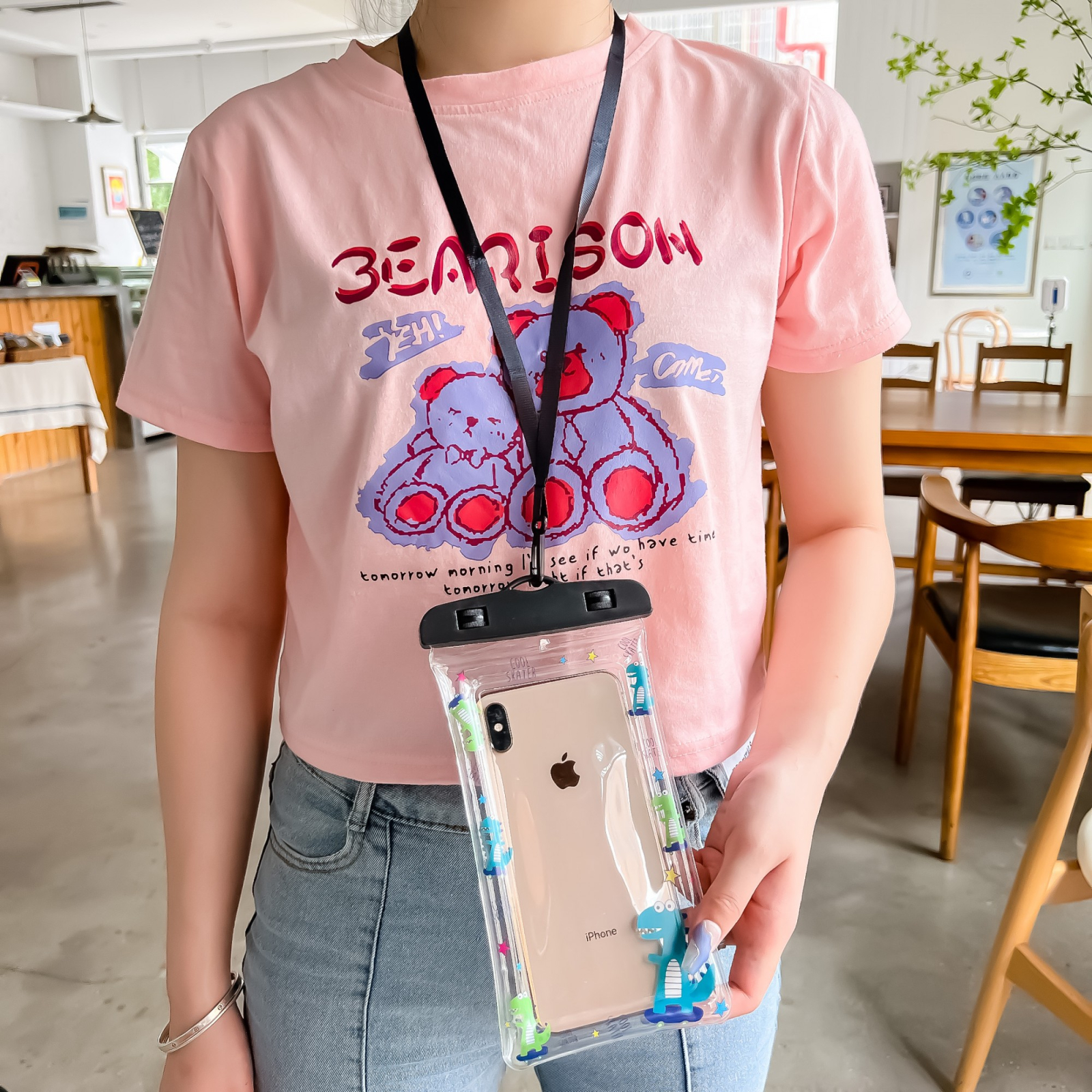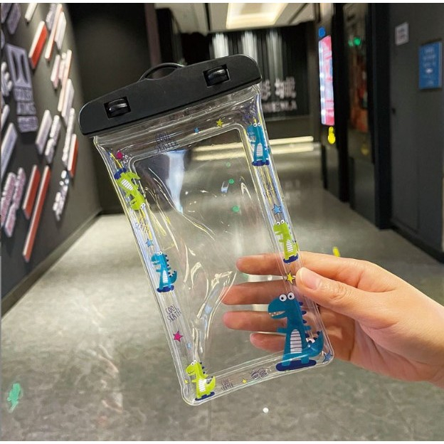 Husa subacvatica Kids Waterproof , Snowproof, Universala, cu Snur, pentru telefon sau documente, Dino, Negru