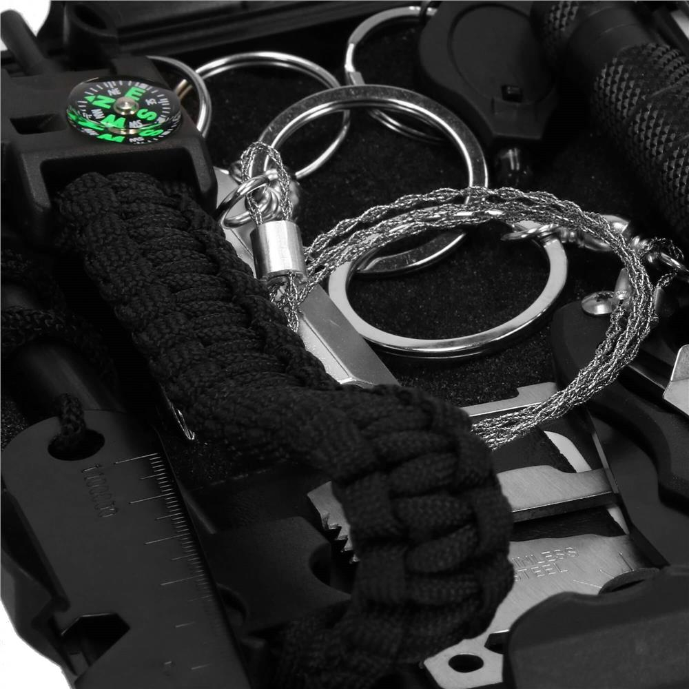 KIT DE SUPRAVIETUIRE MULTIFUNCTIONAL Numarul de articole: 19Material: otel inoxidabil / plasticDimensiuni cutie: 20 x 11 x 5 cmTrusa de supravietuire completa are toate elementele...