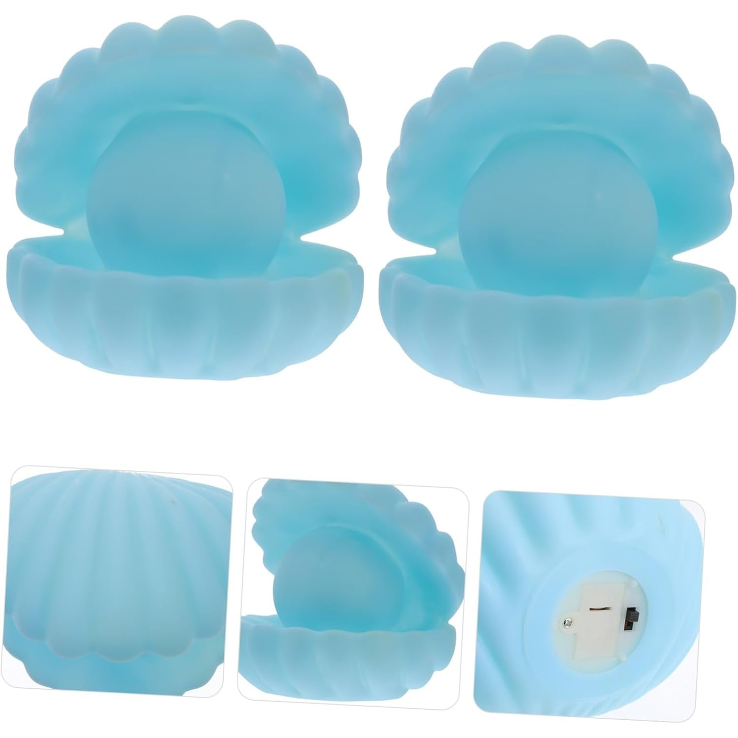 Lampa de Veghe, , Model Scoica cu Perla, Lumina Calda, 10 x 8.5 cm, Led, Baterii Incluse 3 x LR44, Albastru