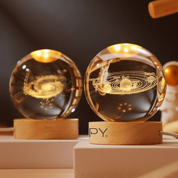 Lampă de birou cu bilă de cristal 3D, gravată cu laser