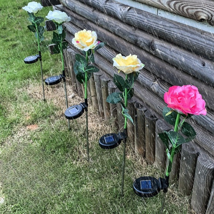 Lampa Solara LED tip Trandafir cu o floare pentru Gradina, Inaltime 75 cm,