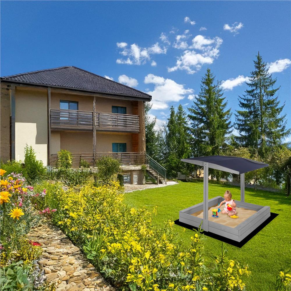 Lada nisip din lemn cu acoperis reglabil si capac, pliabila, 120x120x120 cm, gri