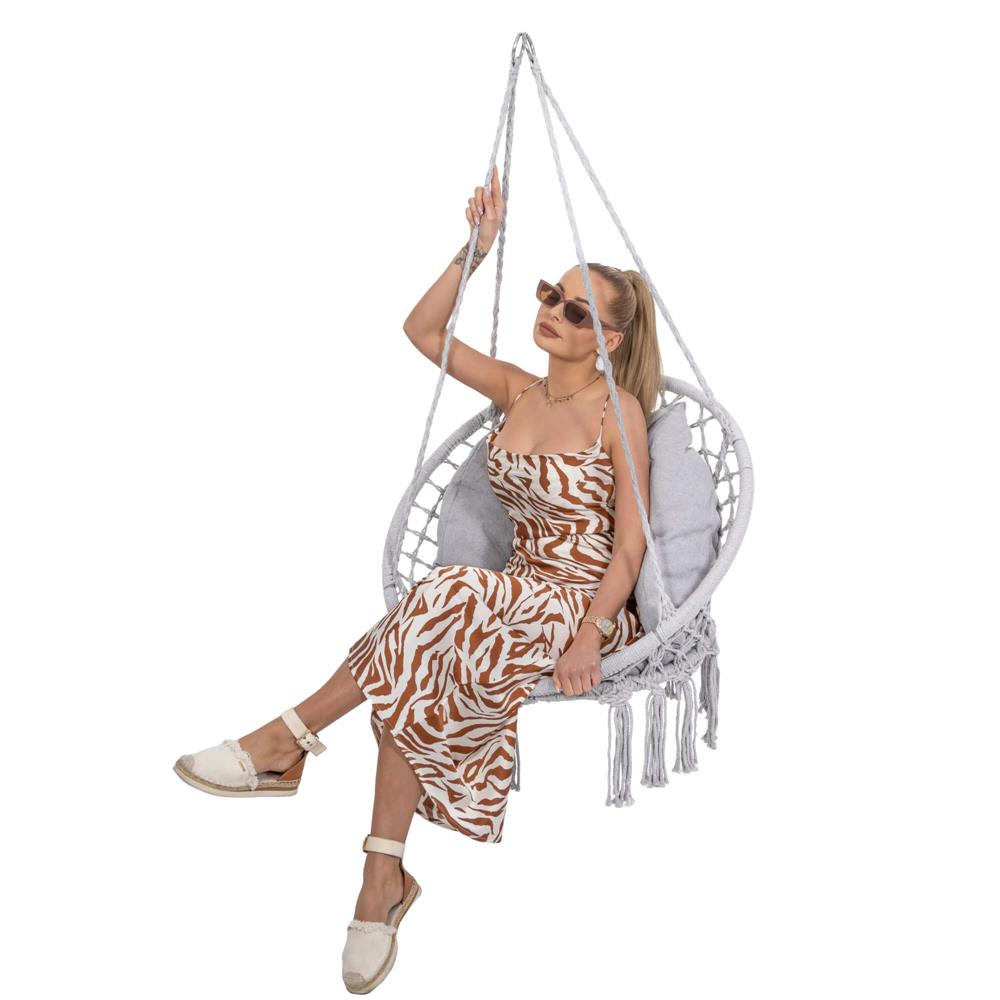 Scaun rotund Sersimo tip leagan suspendat cu perna Confort Plus casa sau gradina, gri