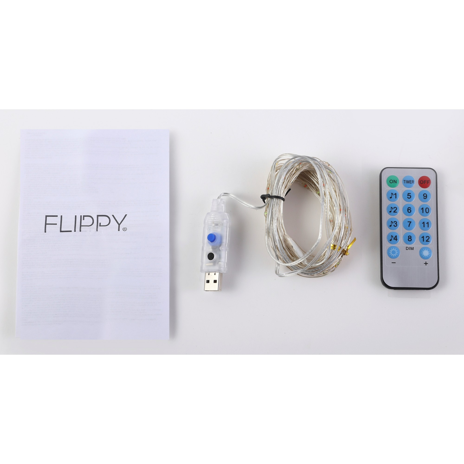 Produsul este compus dintr-o instalatie luminoasa de 10m, cu fir de cupru, o telecomanda cu 8 functii pentru diverse jocuri de lumini si alimentare prin USB.