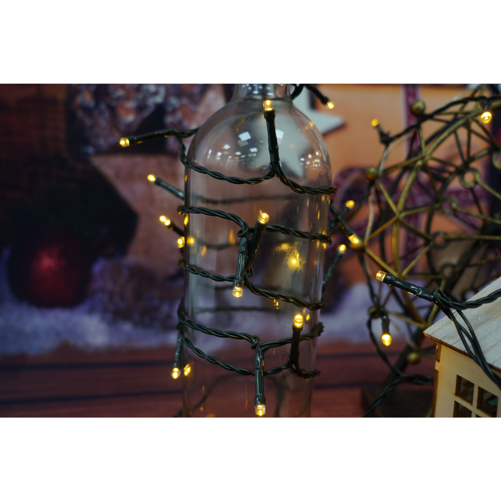 Instalatia luminoasa este de tip sir, liniara, cu 50 LED-uri de culoare alb cald, avand o lungime de 7 m, cu fir transparent realizat dintr-un plastic anti-inghet, iar firele electrice sunt fabricate din cupru.
