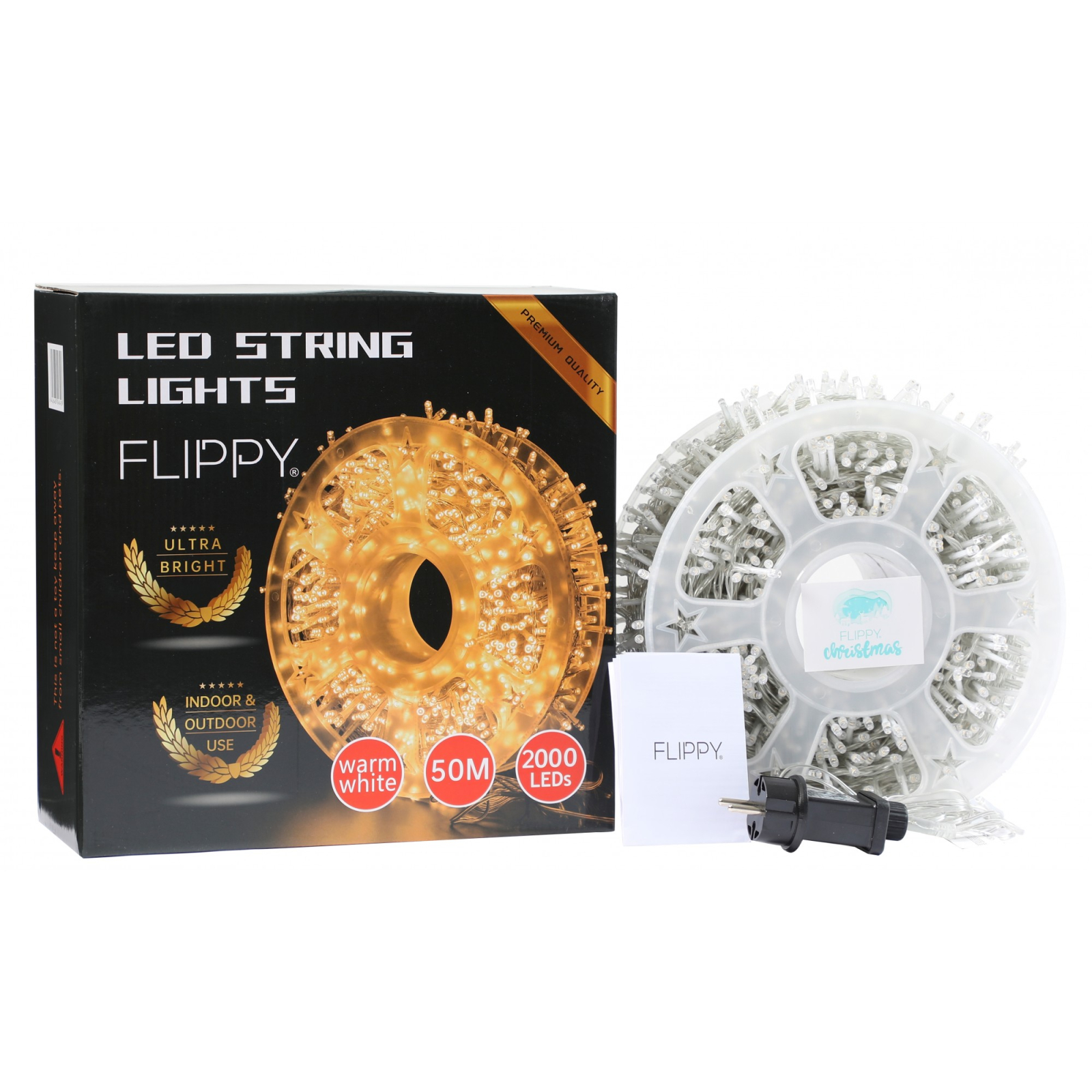 Instalatie Craciun liniara, fir transparent, cu transformator, 50m, alb cald, 2000 LED-uri, 8 jocuri de lumini,
