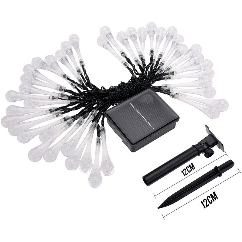 Instalatie Craciun, Solare Tip Picaturi, 50 Led-uri, 9.5 metri, Alb rece, Senzor de lumina,