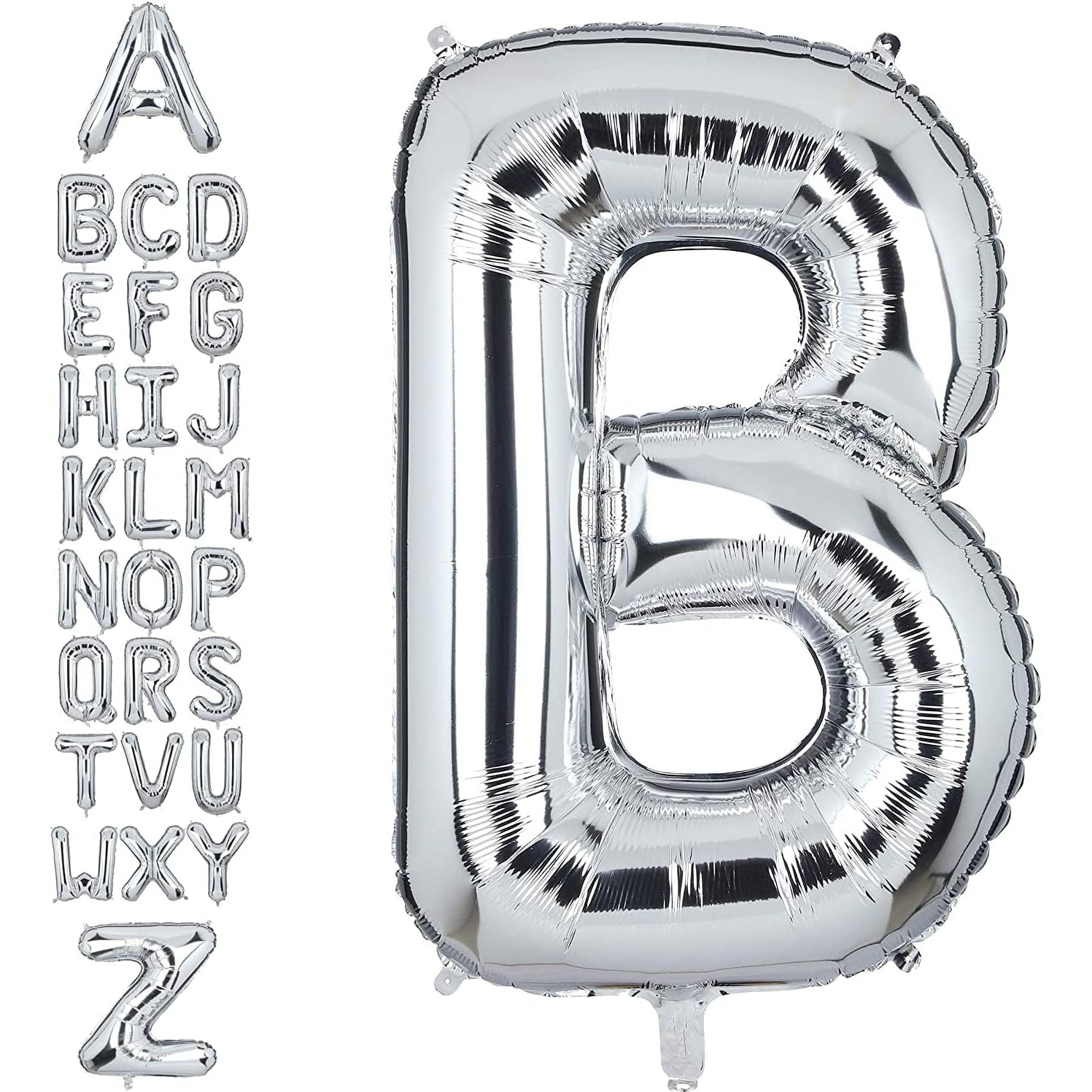 Balon Folie Metalizata Litera B, , 40 cm, Umflati cu Heliu sau Aer, Ambalaj Individual, Pai inclus, Argintiu