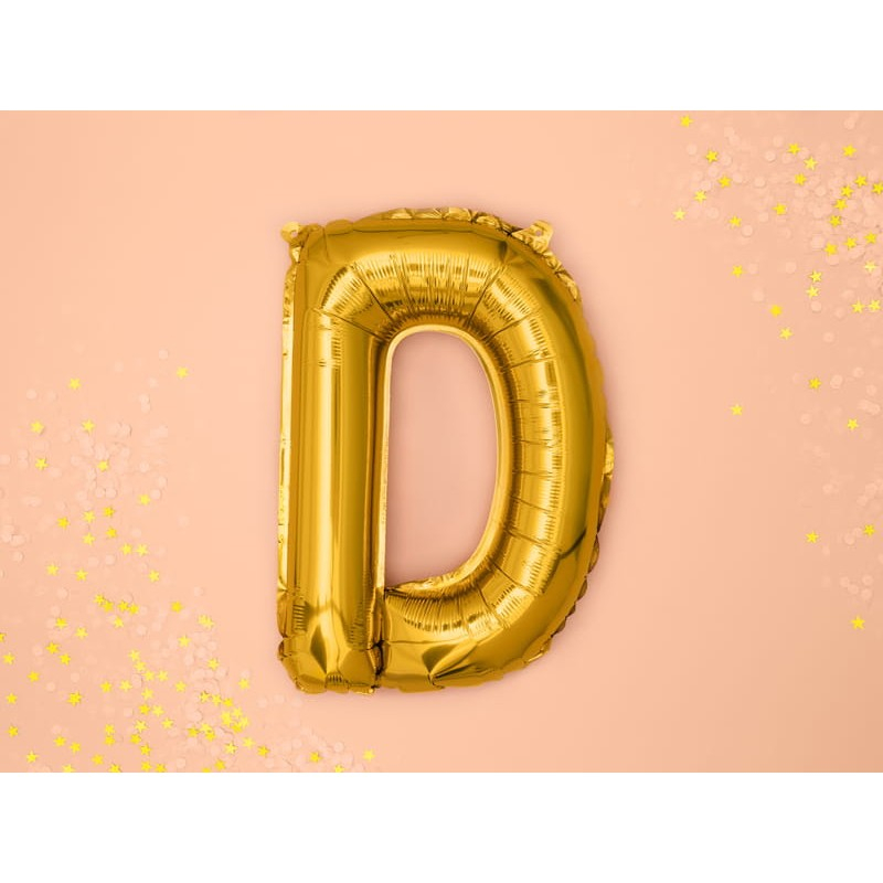 Balon Folie Metalizata Litera D, , 80 cm, Umflati cu Heliu sau Aer, Ambalaj Individual, Pai inclus, Auriu