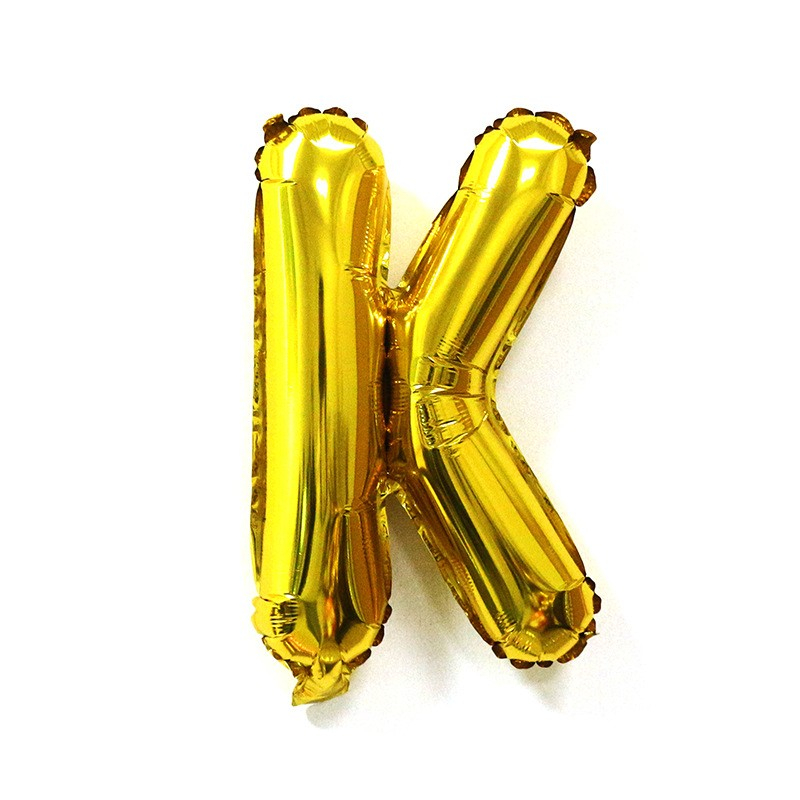 Balon Folie Metalizata Litera K, , 40 cm, Umflati cu Heliu sau Aer, Ambalaj Individual, Pai inclus, Auriu