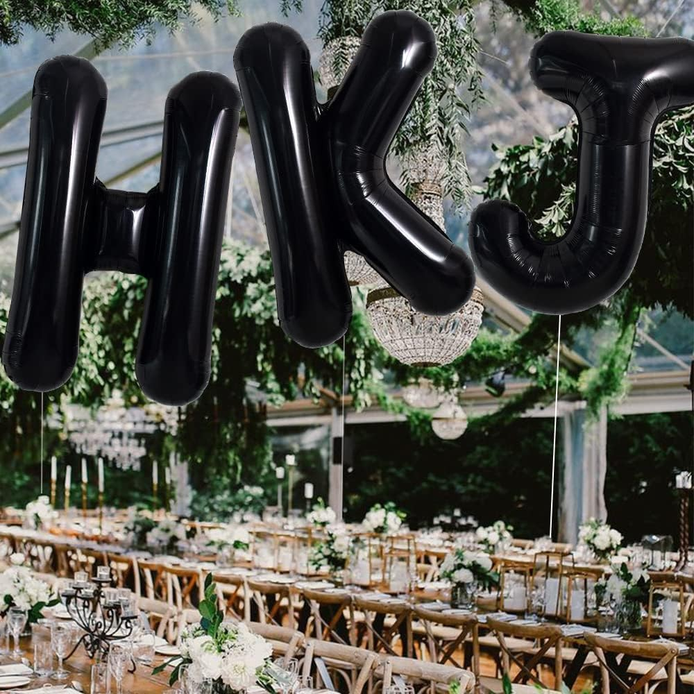 Balon Folie Metalizata Litera K, , 40 cm, Umflati cu Heliu sau Aer, Ambalaj Individual, Pai inclus, Negru