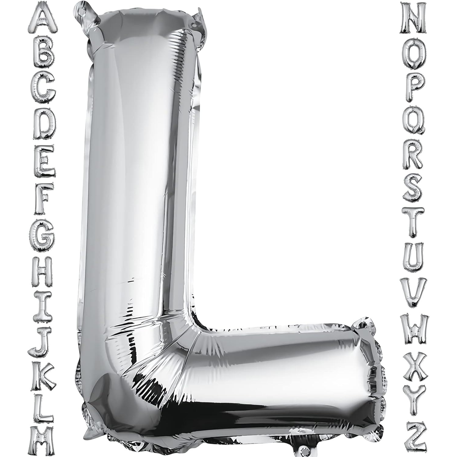 Balon Folie Metalizata Litera L, , 40 cm, Umflati cu Heliu sau Aer, Ambalaj Individual, Pai inclus, Argintiu