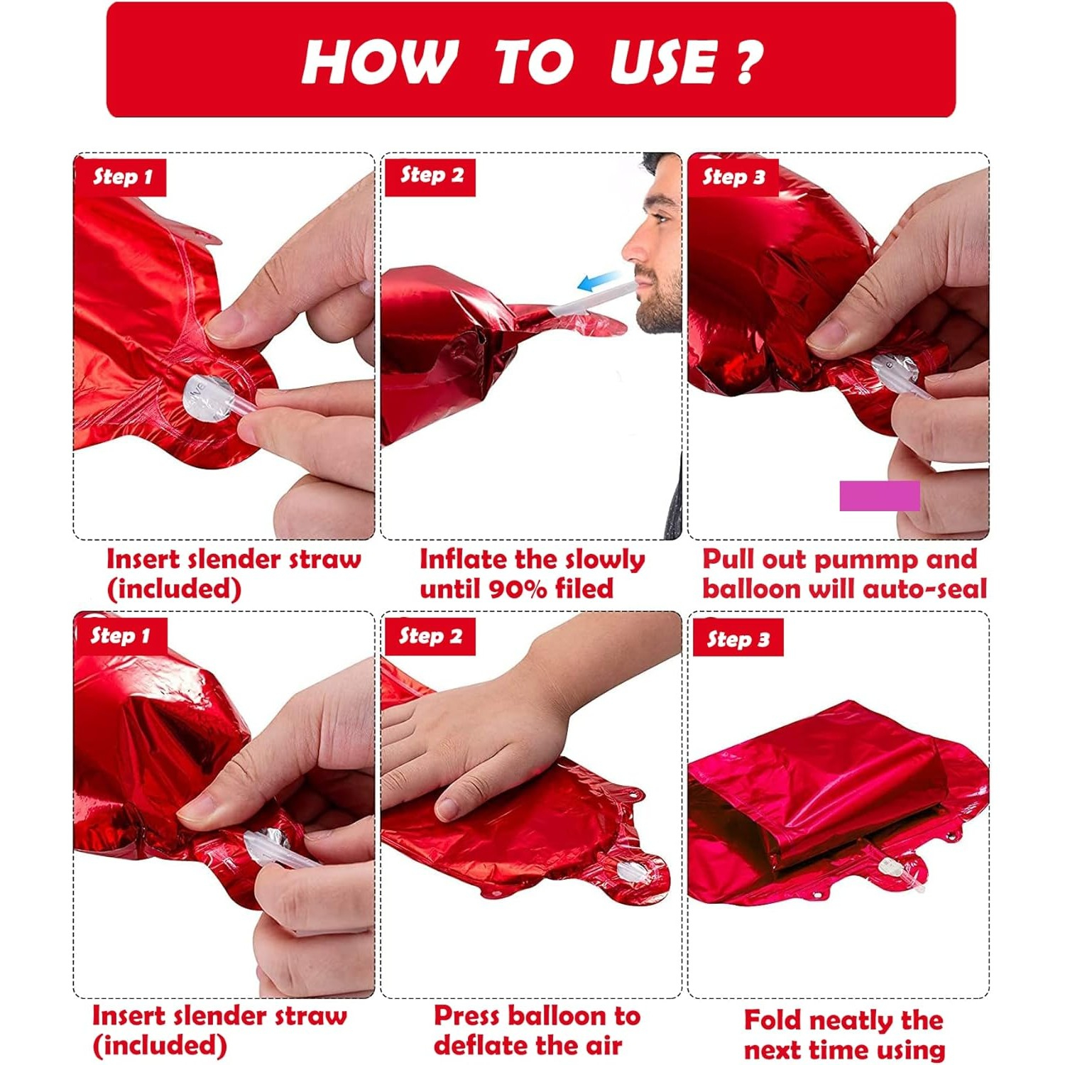Fabricate dintr-un material de calitate superioară, folia de aluminiu, baloanele sunt durabile și rezistente. Ele pot fi umflate atât cu aer, cât și cu heliu, oferindu-ți flexibilitatea de a le folosi în diverse decoruri. Setul include și un pai transparent pentru o umflare ușoară, astfel încât să poți pregăti rapid spațiul pentru petrecere.