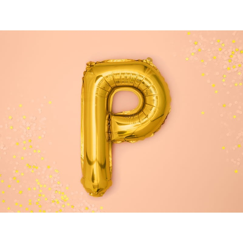 Balon Folie Metalizata Litera P, , 40 cm, Umflati cu Heliu sau Aer, Ambalaj Individual, Pai inclus, Auriu