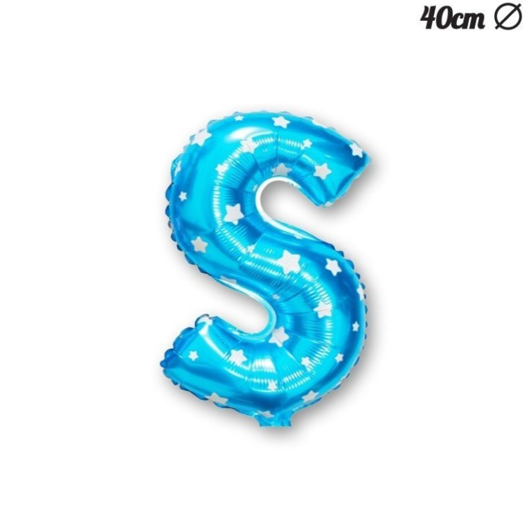 Balon Folie Metalizata Litera S, , 40 cm, Cu Imprimeu Stelute, Umflati cu Heliu sau Aer, Ambalaj Individual, Pai inclus, Albastru