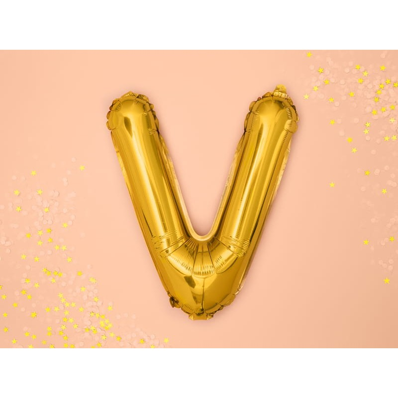 Balon Folie Metalizata Litera V, , 80 cm, Umflati cu Heliu sau Aer, Ambalaj Individual, Pai inclus, Auriu