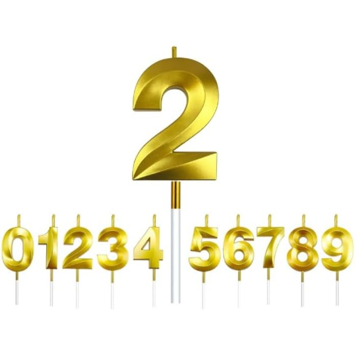 Lumânare Cifră 2, ®, Model Diamond, 5 x 3.4 cm, Auriu