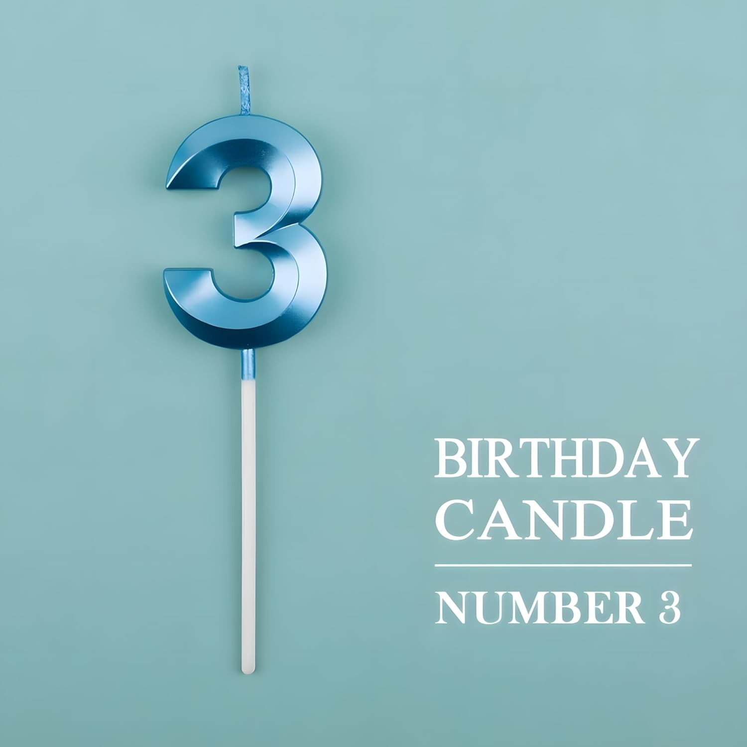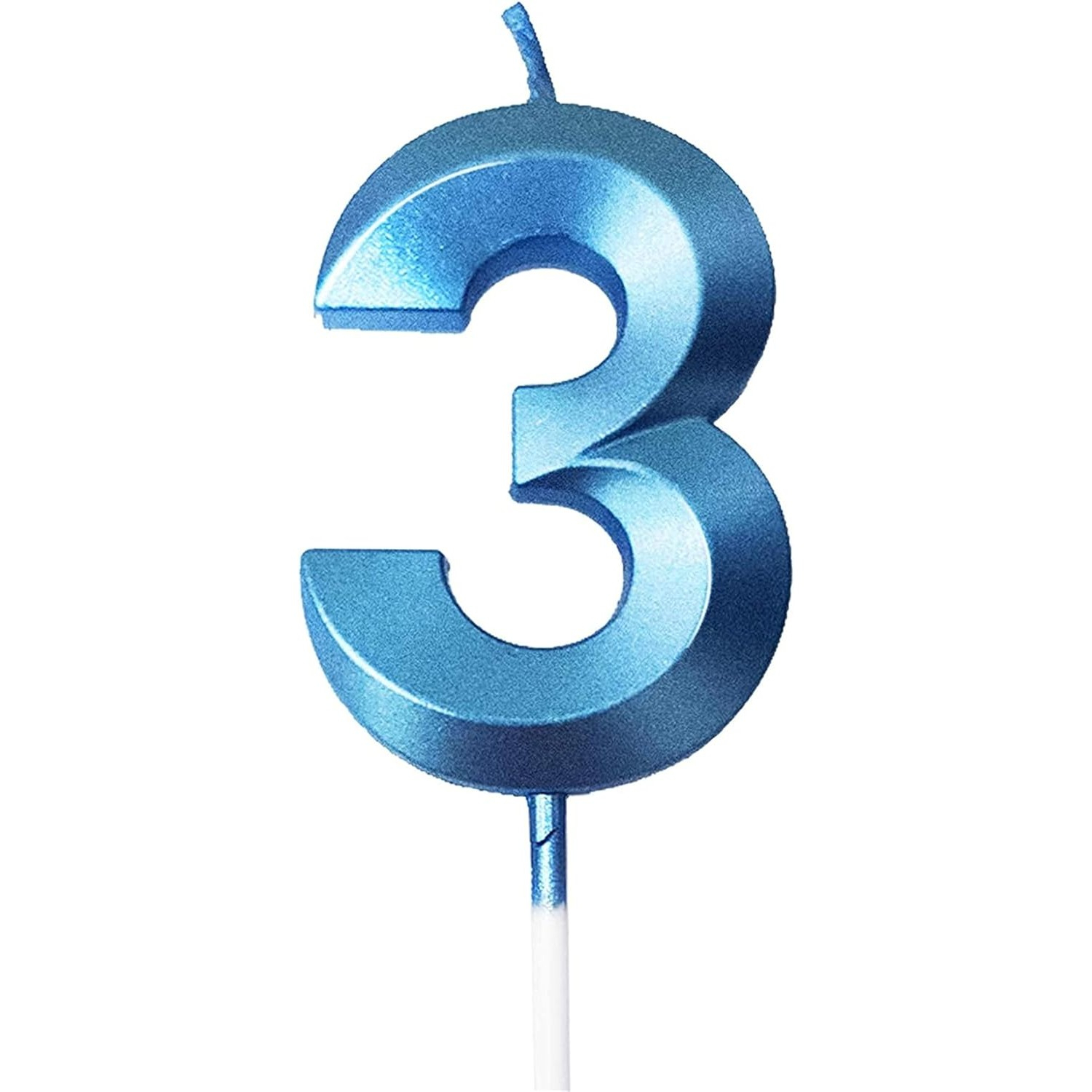 Lumânare Cifră 3, ®, Model Diamond, 5 x 3.4 cm, Albastru
