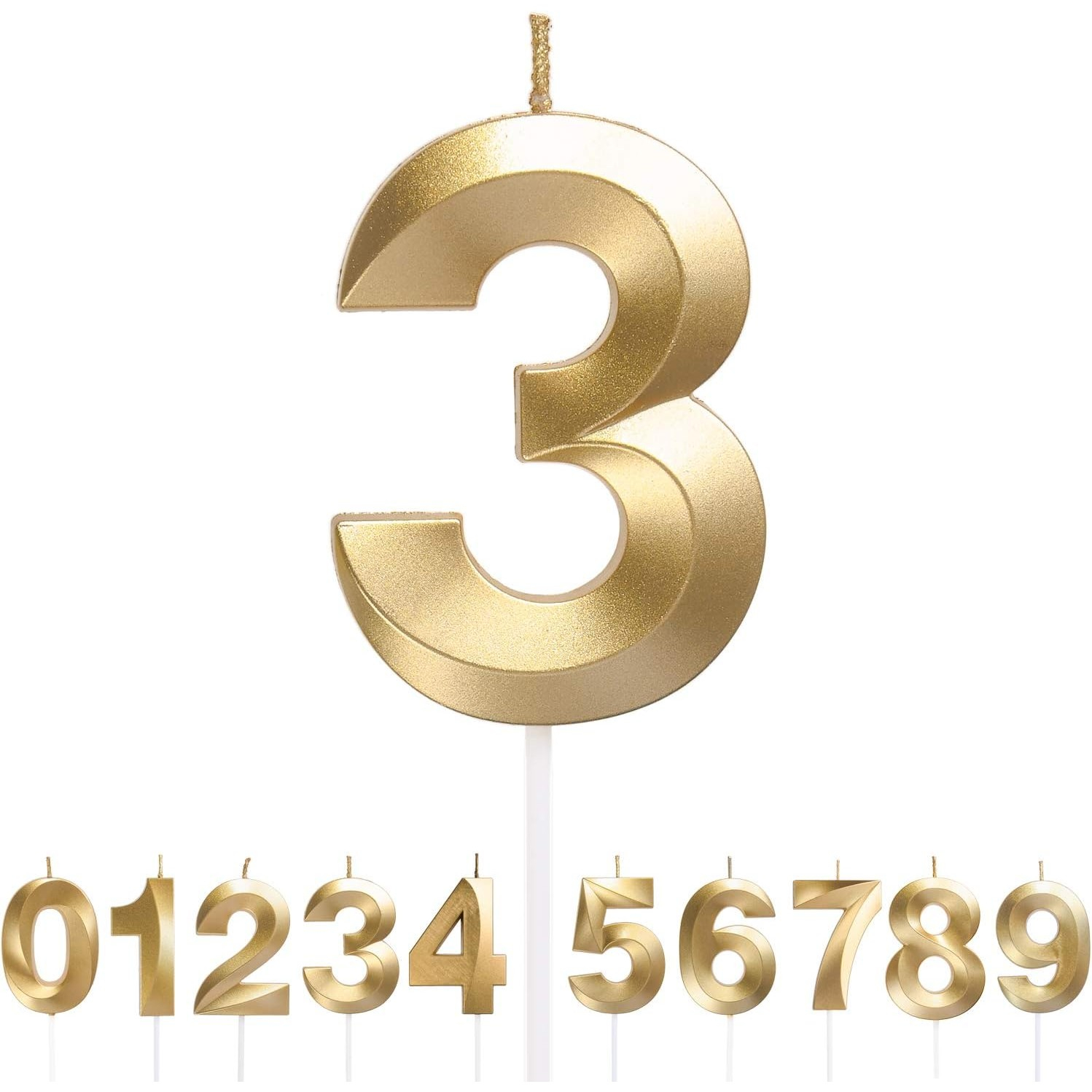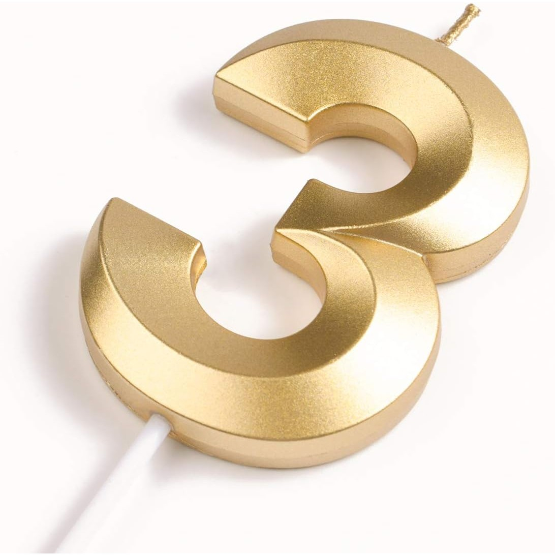 Lumânare Cifră 3, ®, Model Diamond, 5 x 3.4 cm, Auriu