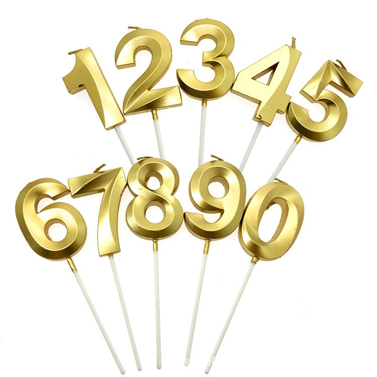 Lumanare Cifra 3, , Model Diamond, 5 x 3.4 cm, Auriu