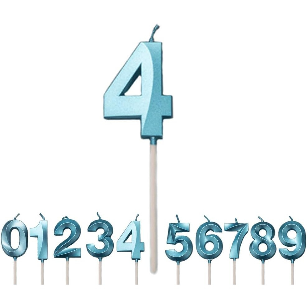 Lumânare Cifră 4, ®, Model Diamond, 5 x 3.4 cm, Albastru