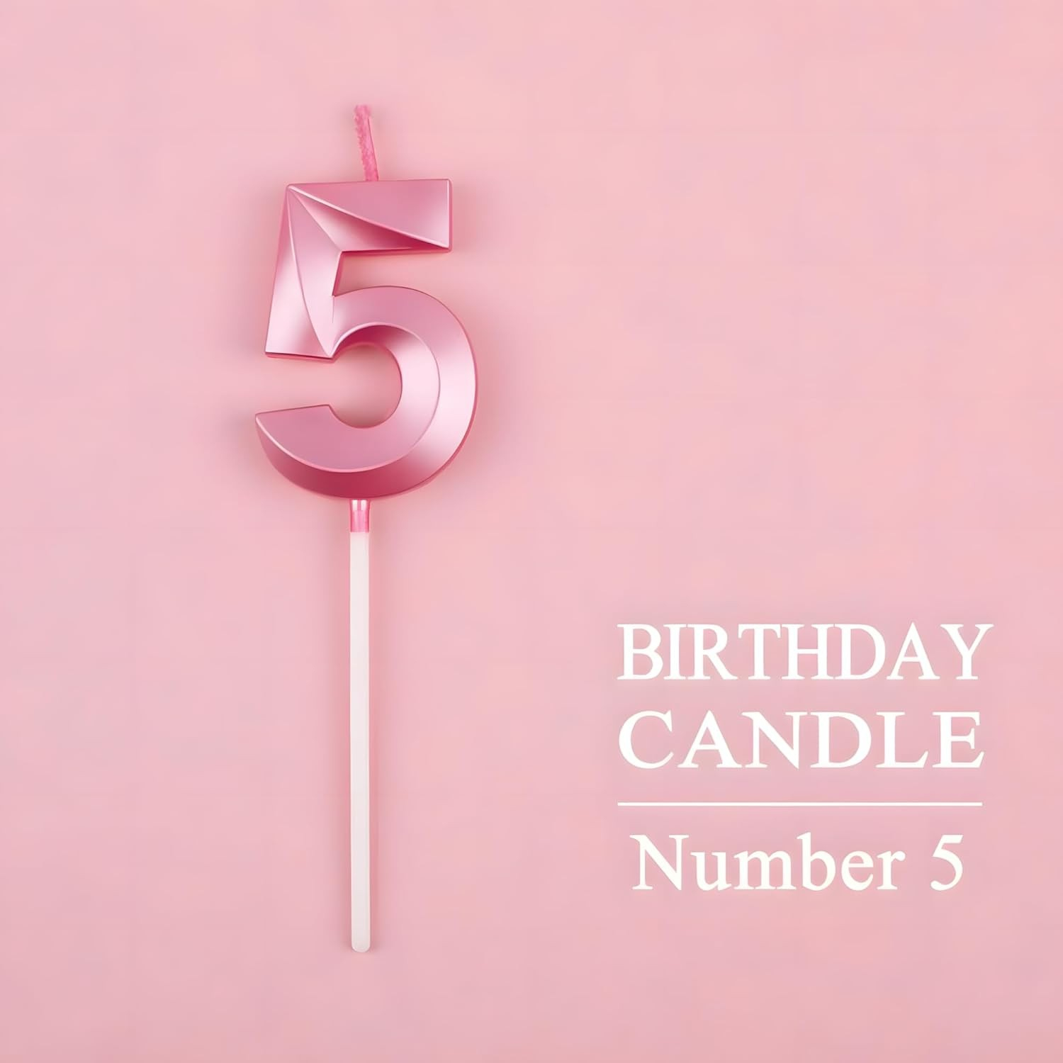 Lumânare Cifră 5, ®, Model Diamond, 5 x 3.4 cm, Roz