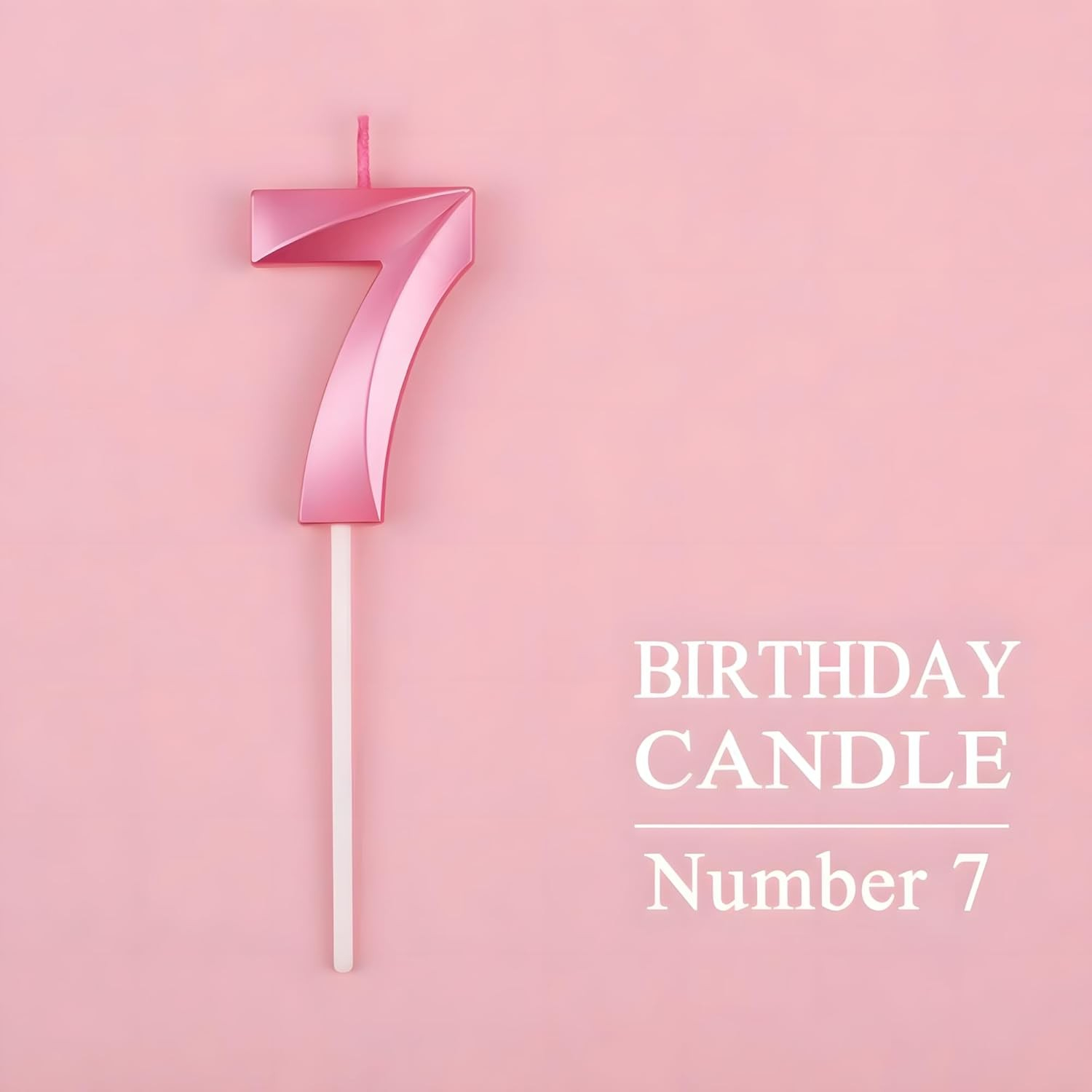 Lumânare Cifră 7, ®, Model Diamond, 5 x 3.4 cm, Roz