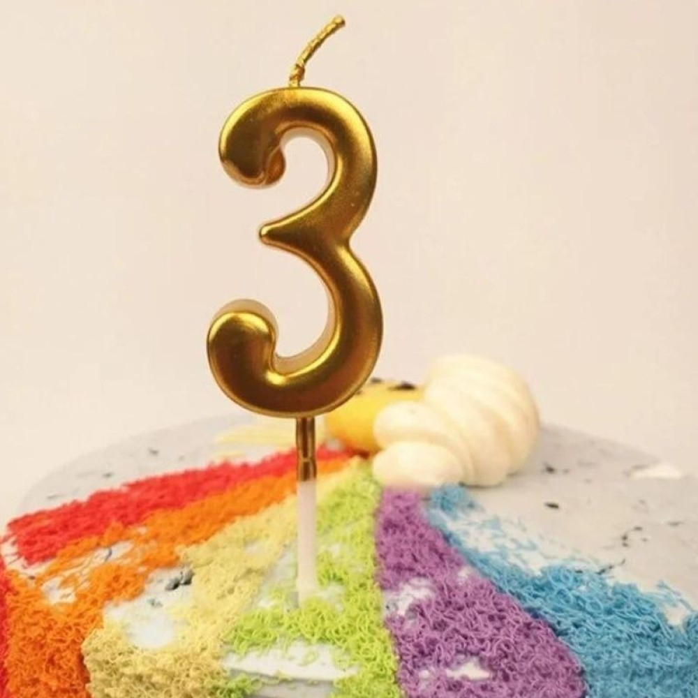 Lumanare de Tort, , Model Cifra 3, Party, 4.5 x 2.5 cm, din Parafina, Auriu