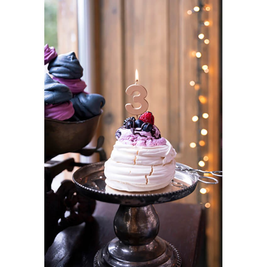 Lumanare de Tort, , Model Cifra 3, Party, 4.5 x 2.5 cm, din Parafina, Rose Gold