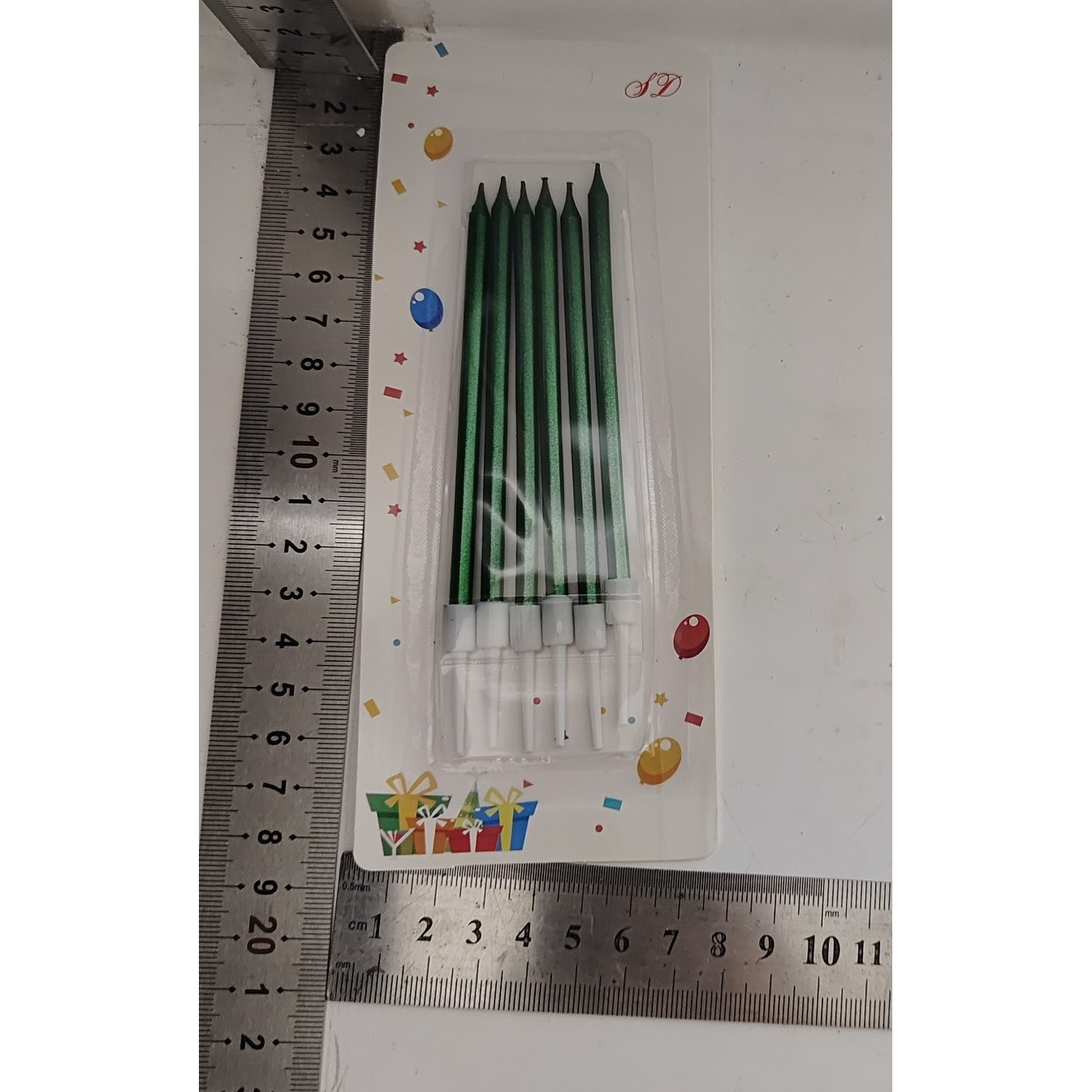 Set 6 Lumanari de Tort, , din Parafina, 11 x 0.4 cm, Lucioase, Verde