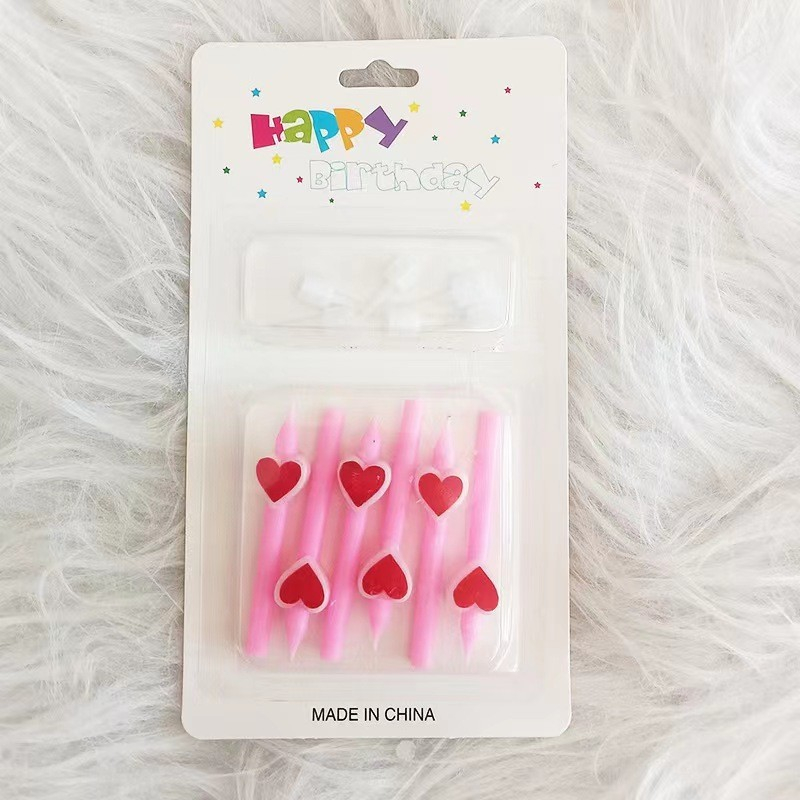 Set de 6 Lumânări cu Inimioare Roz - Happy Birthday