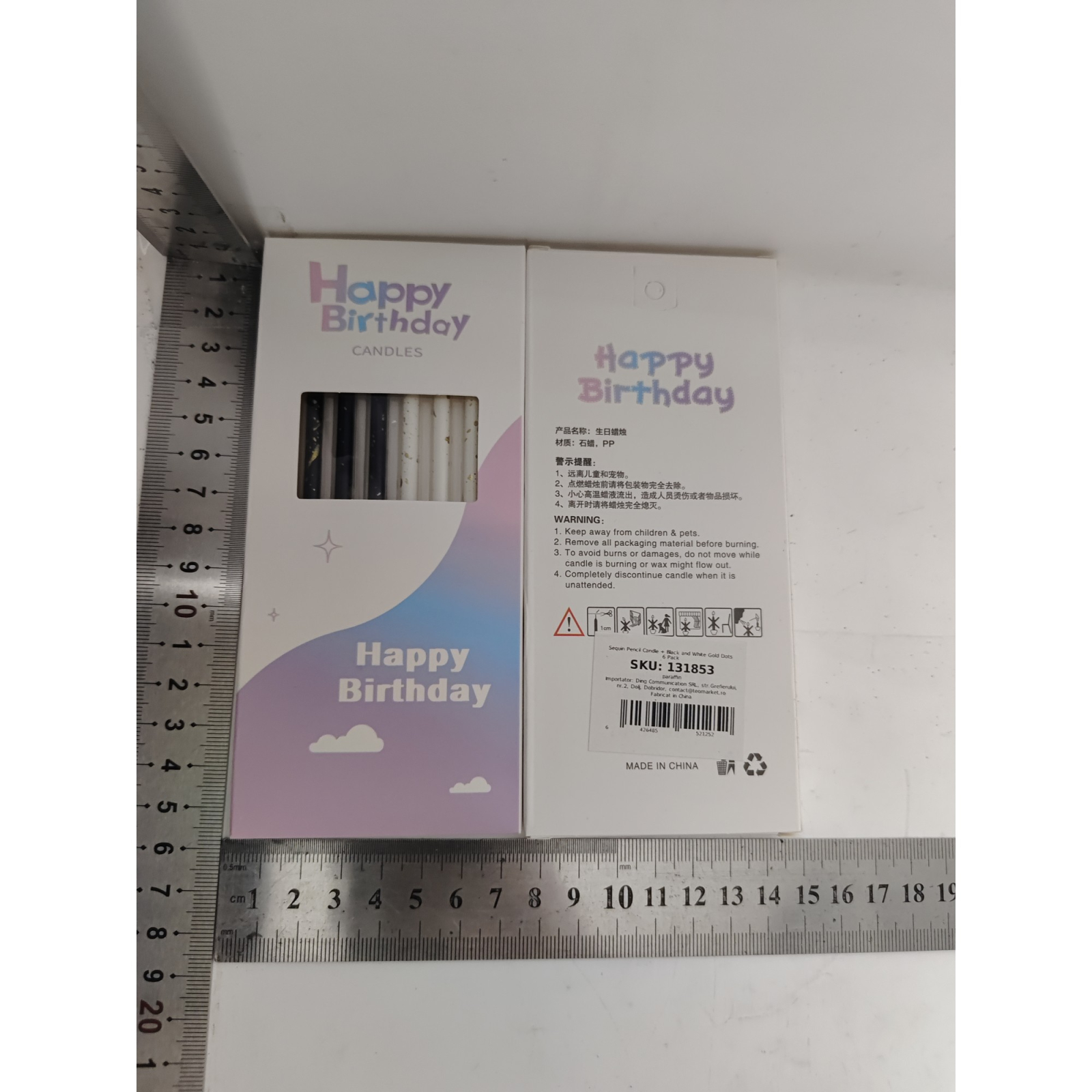 Set 6 Lumanari Lungi, , din Parafina, 10 x 0.5 cm, Happy Birthday, Alb/Negru