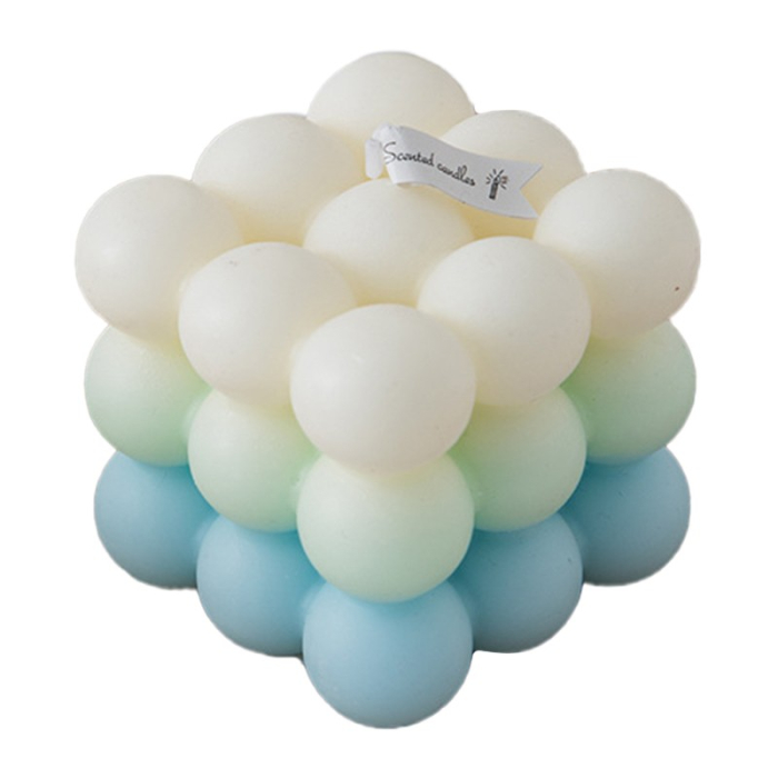 Lumanare Parfumata, , Model Cub, Gradient in 3 Culori Pale, 6x6x6 cm, Aroma de Mare, Albastru deschis