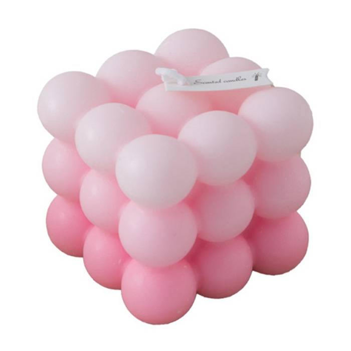 Lumanare Parfumata, , Model Cub, Gradient in 3 Culori Pale, 6x6x6 cm, Aroma de Piersic Alb, Roz