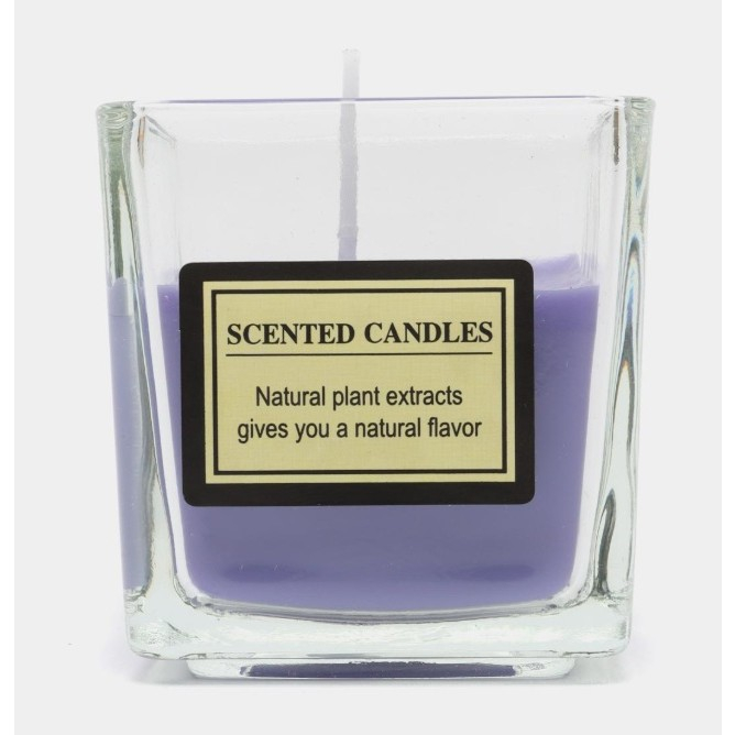 Lumanare Parfumata, , Model Pahar Transparent, cu Ulei Esential, 4.8 x 5.4 x 5.5 cm, Aroma de Lavanda, Mov