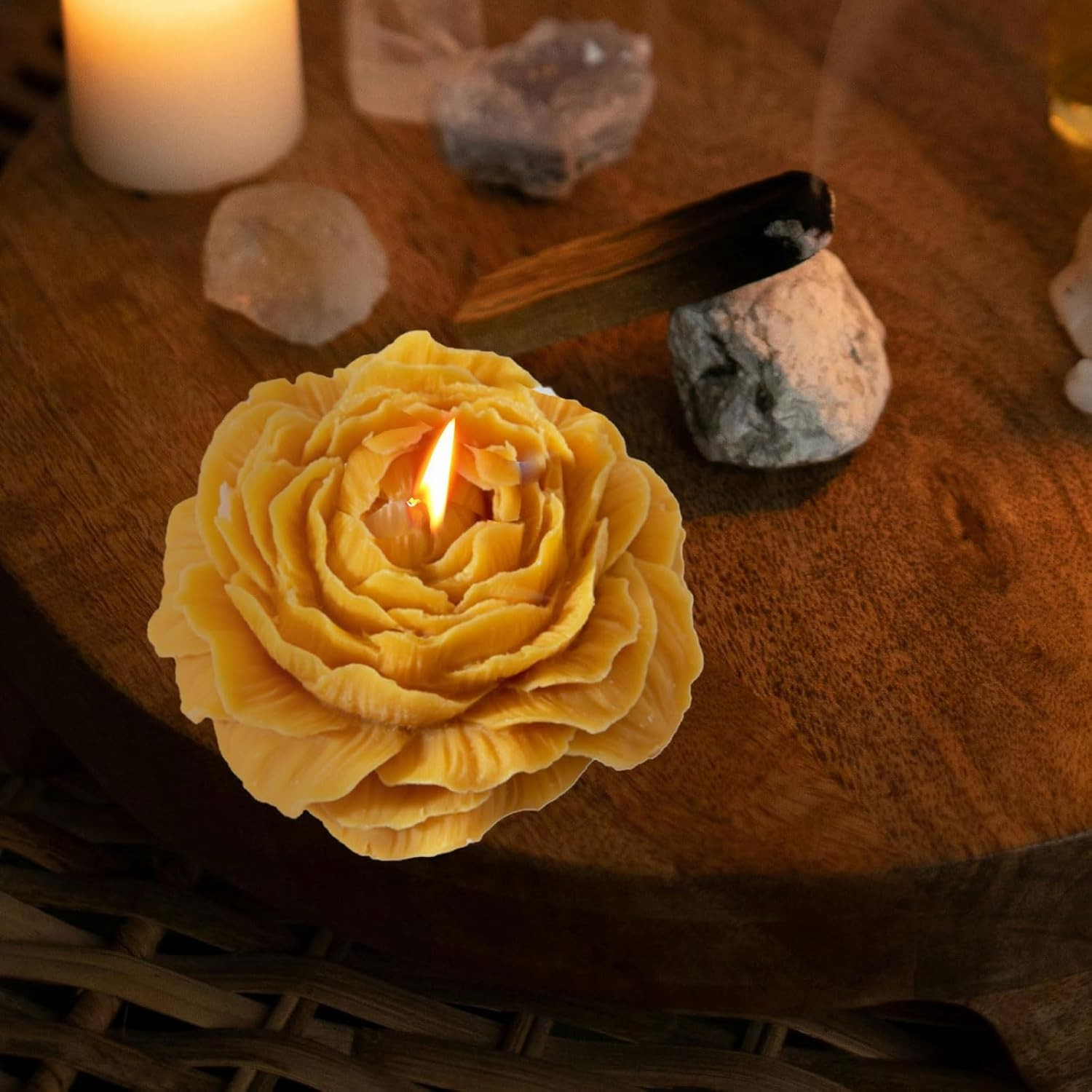 Această lumânare parfumată, cu un design delicat în formă de trandafir, adaugă un plus de eleganță și rafinament oricărui spațiu. Fabricată din ceară mixtă printr-un proces semimanual și semimecanic, oferă o ardere uniformă și o aromă plăcută, perfectă pentru relaxare și decor.