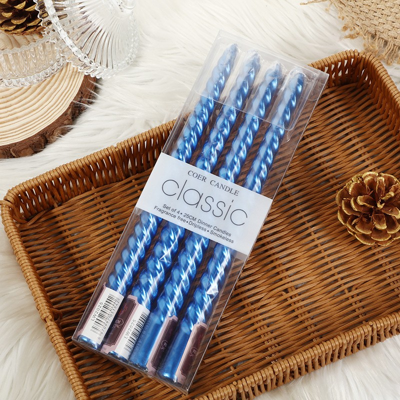 Set 4 Lumanari pentru Masa, Cina, Decor, , Model Rasucit, Lungime 25 cm, Albastru