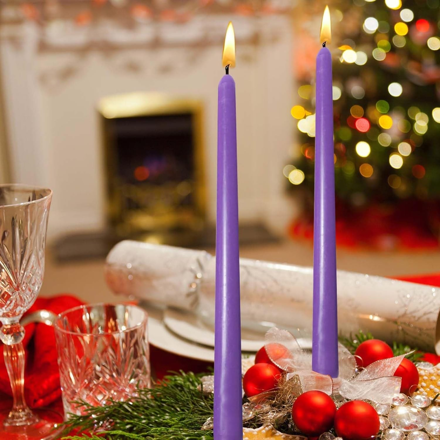 Set 4 Lumanari, , pentru Suport de Masa, Fara Miros si Fum, din Parafina, 2.2 x 25 cm, Mov