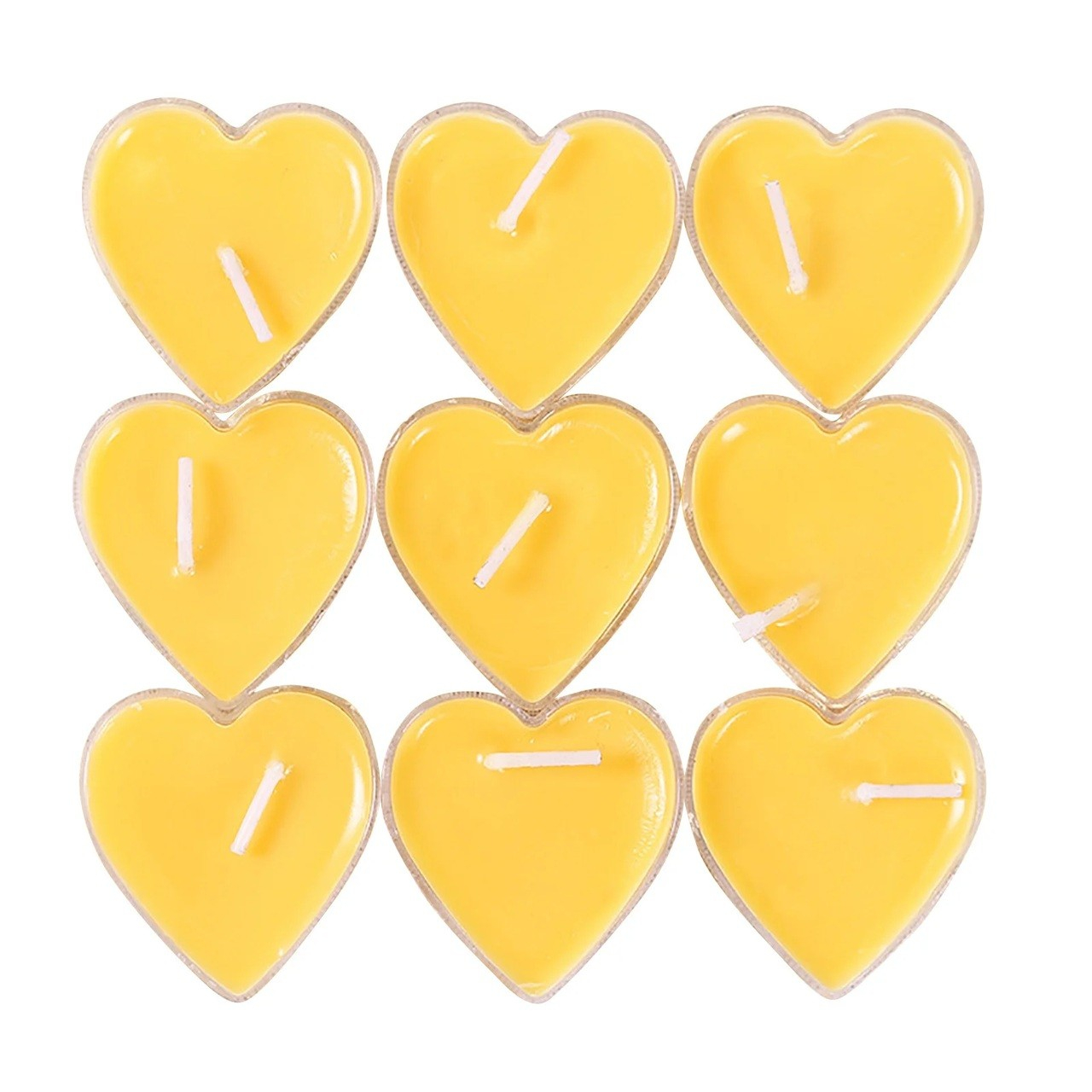 Set 9 Lumanari in Forma de Inima, , pentru Ziua Indragostitilor, Aroma de Citrice, Ardere 3.5 h, din Parafina, 4 x 2 cm, Galben