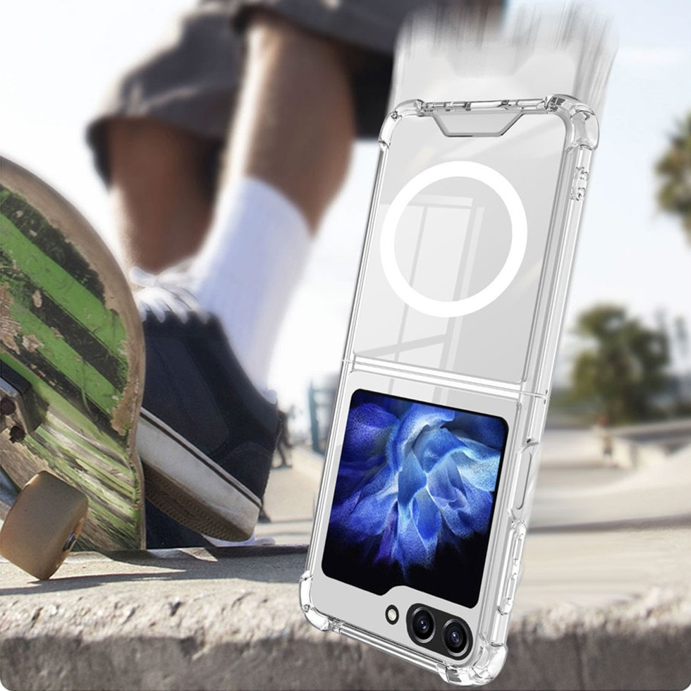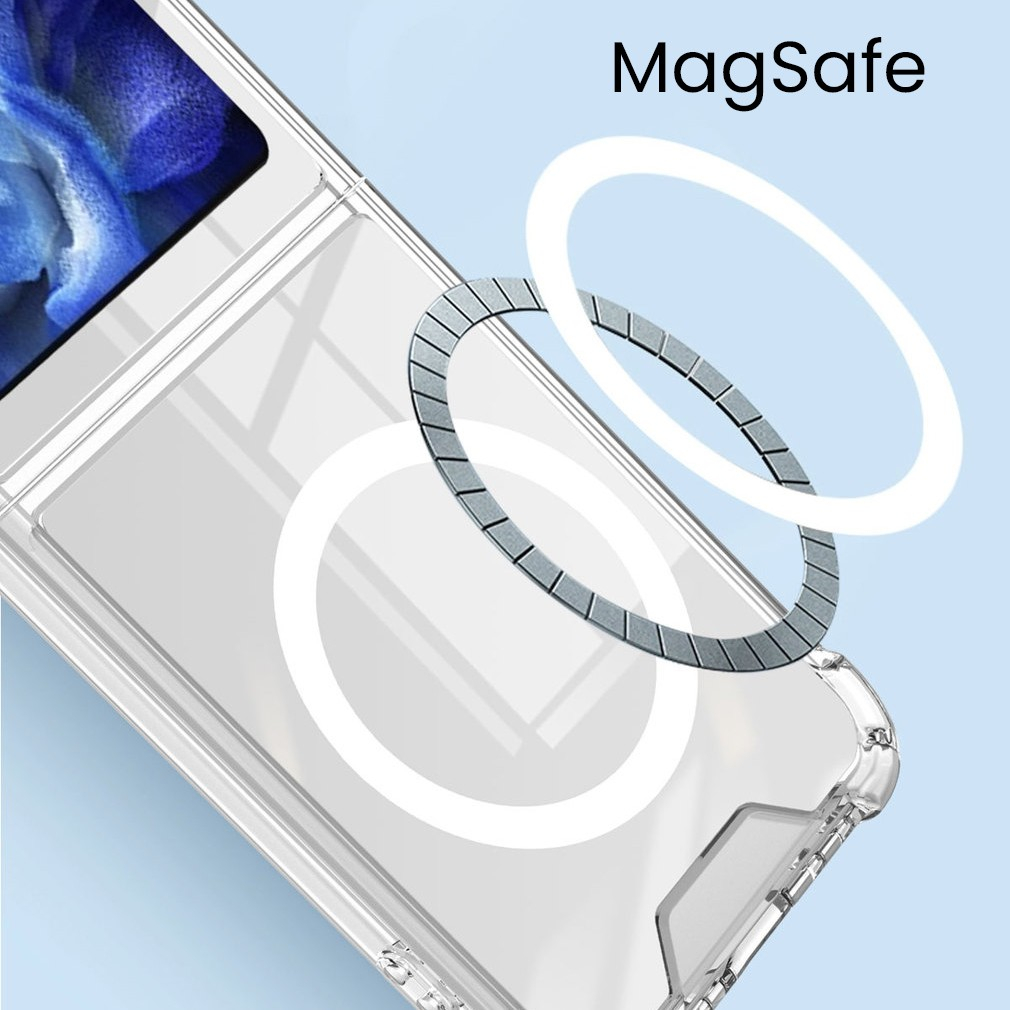 Material Premium: Husa pentru Samsung Galaxy Z Flip 6 cu MagSafe transparenta utilizeaza material placut la atingere si are decupaje pentru toate porturile si butoanele telefonului. Husa transparenta nu va ascunde culorea si design-ul telefonului.