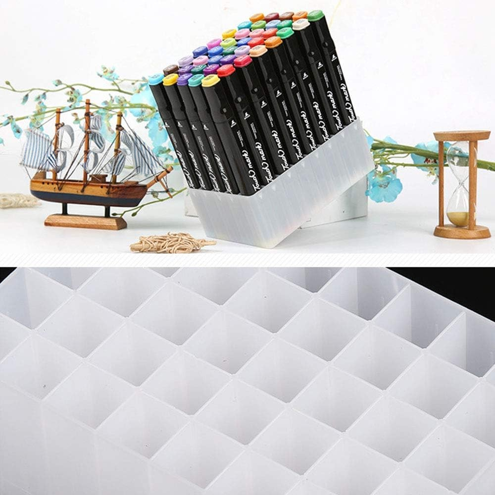 Suport de Depozitare , pentru Markere și Stilouri, Cutie de Depozitare pentru Birou, Multifuncțională, 60 Spații, Alb/Negru