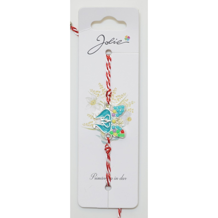 Bratara cu Snur Alb- Rosu Fluture Pietre si Email