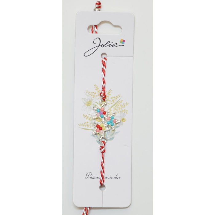 Martisor Bratara Alb-Rosu cu Pandantiv Metalic, Model 4