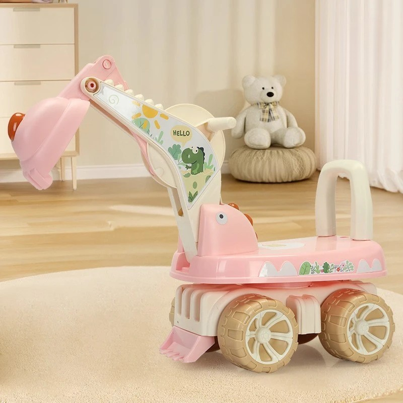Excavatorul este un vehicul interactiv destinat copiilor cu vârste cuprinse între 1 și 3 ani, fiind potrivit atât pentru băieți, cât și pentru fete. Acest excavator le permite copiilor să exploreze lumea construcțiilor prin joc, oferind funcții distractive, cum ar fi muzică, lumini și un braț care sapă în pământ și se poate roti 360 de grade. Jucăria este realizată din materiale plastice ecologice și este gândită să fie sigură și stabilă.