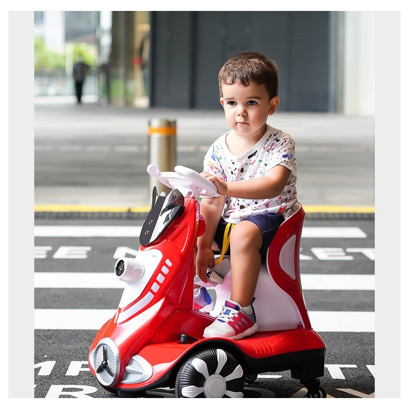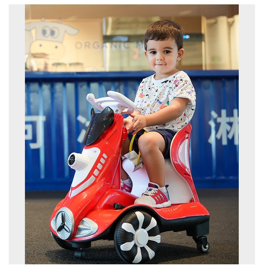 Masinuta electrica cu telecomanda pentru copii, , roti spate rotire 360, curea siguranta, baloane de sapun, lumini si sunete, self control si prin telecomanda, cu pedale de acceleratie si frana, rosie