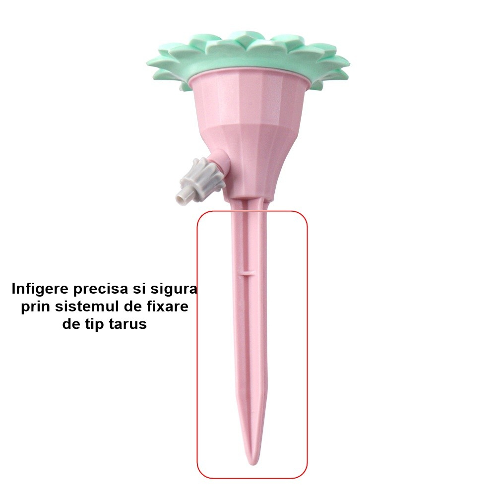 Design eficient și atractiv: Picurătoarele cu valvă sunt proiectate sub forma unei flori, ceea ce adaugă un element decorativ grădinii tale. Designul atrăgător se combină cu funcționalitatea pentru a oferi o modalitate eficientă și plăcută de a iriga plantele.